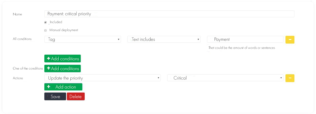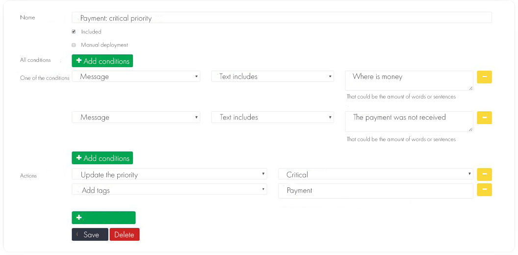 Then we set up the rules. There are several options: for example, determining the category of the request by keywords or adding the required tag to the request by yourself.