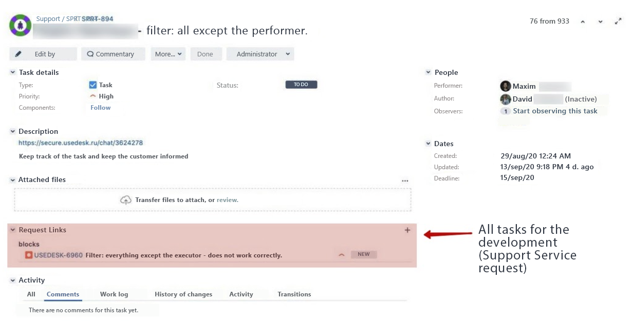 2. The criticality of the problem. If you submit a task for development without determining its criticality at the start, developers will not immediately understand what order to take tasks into work. One problem can wait a week, but you need to drop everything and urgently run to help for the sake of another. It does not happen that the developers immediately take on non-urgent tasks while the burning ones are gathering dust on the shelf, instantly finding out the criticality of the task and only then giving it to development.